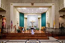 The history of St. Theresa goes back to the 1840s. The only two chapels in the area were in Donaldsonville, Louisiana across the Mississippi River and in St. Gabriel, Louisiana at the St. Gabriel Catholic Church. The settlers had to cross the river or make the long journey on horse or wagon to these churches. It was known that a new church was needed. The new church was built in Cornerview near Gonzales, Louisiana. This church was renamed Sacred Heart at Cornerview.[1] As the town's population grew the railroad line from Baton Rouge to New Orleans expanded, and River Road and the new Airline Highway cut through Gonzales, a declaration was made to transfer the church from Cornerview to Gonzales. The Cornerview church parishioners signed a protest letter to Archbishop James H. Blenk SM of New Orleans. A new church was then built at the same site near the L and R railroad tracks in downtown Gonzales. It was renamed to St. Theresa upon the request of a benefactor. This church was completely built by parishioners and was thought of as "the ugliest church ever." The parishioners wanted a new church as the steeple was about to fall down. A new church was built in the midst of World War II and is the church that stands today. In 1959 a catholic school was built behind the church building.[2][3] The school is under the same name as the church. After its construction in 1959, the building has been added on to and changed with the additions of a library in 1981, a gym in 1992, a science and computer lab in 2002, and expansion of the front office in 2023l.[4] Another campus was built in Prairieville in 2003. It hosts pre-k through 3rd grades whilst St. Theresa hosts 4th through 8th grades. The current principals are Micah Ballow and Andy Kling.