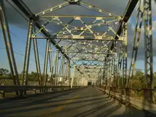 Work was done in Cayuga to install a new crossing over the Grand River, replacing the five-span steel structure that previously served traffic since 1924.[9][69] The new concrete structure was opened to traffic on June 20, 2014,[70] and the former structure was demolished after that. On November 4 and December 4 of that year, construction on the bridge was halted by the Haudenosaunee Confederacy Chiefs Council on the claim that the structure impeded on land reserved for a towpath along the Grand River by the Six Nations of the Grand River First Nation. The remaining work included a scheduled three-day closure during which the new bridge was jacked 5 metres (16 ft) north to align with the former structure, as well as decorative work.[9][71][72] Work was completed in the autumn of 2015.[70]