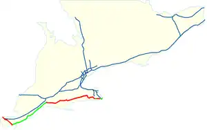 ![]() Location of Highway 3 in Southern Ontario Current route Former route 400-series highways | |||||||