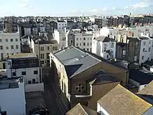 The only church nearby was St Andrew's, the ancient parish church; this was some distance away and had fallen into near-dereliction. The curate of the (now demolished) St Margaret's Church in Cannon Place, Brighton, Rev. Edward Everard, owned some land near the former Wick Farm, on which the Brunswick Town estate had been built. He was aware that there was no plan to build a church in the estate, so he decided to build a proprietary chapel on his land.[4][5] Rev. Everard knew Charles Busby, but they had fallen out after a disagreement in 1824 over the commission for the Sussex County Hospital (now the Royal Sussex County Hospital) in Brighton: Everard was overruled by other members of the planning committee and had to break his promise that Busby would be allowed to design it. Therefore, Everard looked for a different architect to design and build the church, and Charles Barry—who had already built the hospital and St Peter's Church in Brighton—was chosen.[5] The church has a blue plaque commemorating Barry.[6]
