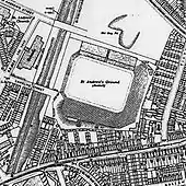 - 1 2 At the very bottom centre of the 1883 map linked here, Muntz Street leaves the Coventry Road heading north-east, crossed by Wright Street. Gessey's field is on the south-eastern side of Muntz St, adjacent to the north-eastern side of the short part of Wright St, and with open country to the other two sides. At the centre left of the map, above the words "Small Heath", and bounded by Coventry Road, Cattell Road, Kelynge Street (since renamed Tilton Road), Garrison Lane and the railway, is the site of the future St Andrew's stadium. Lower down, parallel to and very near the left edge of the map, is Arthur Street, where Small Heath Alliance first played their matches.[10]