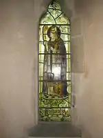 At the western end of the south wall of the chancel, there is a second lower window which dates from the 13th century, with a pointed trefoil head and rebated jambs.[33] This contains the only stained glass in the church, the work of James Powell,[38] installed in 1896 to commemorate Revd. Richard Drummond Ash. The image represents Richard de Wych who was Bishop of Chichester from 1244 to 1253, although the face is that of Richard Durnford, the Bishop of the Diocese who had recently died.[39] The inscription below the window reads: