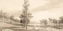 In 1846, the site where the town of St George now stands was Major Thomas Mitchell's Camp VIII of his expedition into northern Australia. He noticed the natural rocky ford across the Balonne River on St George's Day, 23 April, thereby naming the site St George's Bridge. He directed his second-in-charge Edmund Kennedy to construct a cattle depot there while he explored further north. Kennedy and his stockmen remained at St George's Bridge for around a month.[9][8]