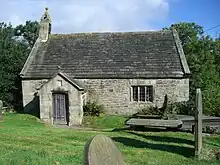 St James’ church was founded by the Barnby family of Barnby Hall, Cawthorne. Thomas de Barnby, vicar of Kirkheaton, became Lord of the Manor of Midhope in 1337 and was succeeded by his nephew Robert in 1354. Robert de Barnby was the probable founder of the church around the year 1360 although other scholars attribute Thomas de Barnby as the founder at a slightly earlier date.[2] The church was built as a Chapel of ease for the main church of the parish of Ecclesfield, St. Marys’, which lay 14 km to the east. The Barnbys’ used St James’ as their private chapel until 1622 when they were forced to sell the entire manor because of financial hardship brought on by fines levied after the English Reformation for hearing Mass and not attending the state church.[3]