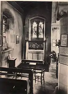 The oldest surviving feature of the present church is possibly the semi-circular head of the arch between the nave and the chancel, although the date of this uncertain. Historic England states that it is 11th century,[1] but another theory is that it dates from 946. The brick may have come from a Roman site in the immediate vicinity of Sandridge or from Verulamium; the abbots of St. Albans are known to have had a stockpile of Roman brick, which was one of the materials used in the fabric of the abbey.[3]