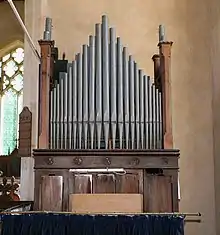 The first recorded organ was a reed organ; this was replaced by an undated organ by the King's Lynn organ builder Samuel Street (active 1840–1883).[6] In 1937 it was removed and reinstalled at St Peter's Church, Smallburgh, where it remains.[7]