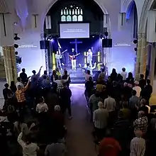 River Church launched in 2021 and is led by Amy and Matt Key, who are both ordained in the Church of England.[9] River Church aims to evangelise amongst students from the nearby University of Suffolk.[10] River Church runs regular Alpha courses which had been developed by clergy at Holy Trinity Brompton .These aim to be more accessible by offering free food, short talks, and live music.[11] They also serve refreshments during weekdays [12]