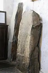 In the north west corner of the church will be found two ancient stones. One is the Calixtus Stone, placed in the Church in the 19th century and having been previously used as a footbridge on a neighbouring farm. The inscription has been read as: CAELIXTUS MONEDO REGI, and is thought to mean Calixtus King of Mona.[4]