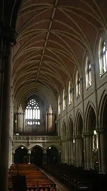 The pipe organ, dating from 1910, is originally a Magahy instrument.[3] The instrument was majorly rebuilt and refurbished between 1947 and 1949 by the Conacher organ company. At this time it was a very highly-regarded instrument. In 1952, Jeanne Demessieux gave a recital here.