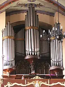 The 42 pipe organ of St.Peter and St Paul church in Bydgoszcz has been built by Wilhelm Sauer in Frankfurt an der Oder in 1877. On 16 October 2007 the instrument, along with all the elements inside the church were officially registered as monuments of the Kuyavian-Pomeranian.