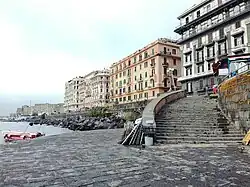 The stairways of Naples are over 200[1] and are complex urban systems that connect various areas of the city comprising often narrow interconnected stone paths, walks, alleys, steps and ramps — varying in slopes and width, at points bifurcating or overarched by buildings. The history of these features is mainly due to expansions outside the walls of the sixteenth century.