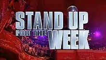Stand Up for the Week is a British television comedy series that was shown on Channel 4, featuring stand-up comedy performances reflecting topical events. The show began in June 2010 with a six-episode series aired on Friday nights,[1] moving to Saturday nights for the second series which began in March 2011.[2] The first series was hosted by Patrick Kielty, with regular performers Jack Whitehall, Kevin Bridges, Andi Osho and Rich Hall. Bridges replaced Kielty as host for the second series, with Jon Richardson joining as a regular performer.[3] Richardson took over as host of the show for the third series which aired in late 2011, and aside from Rich Hall returning, an otherwise entirely new group of regular performers joined the show: Seann Walsh, Sara Pascoe, Josh Widdicombe and Paul Chowdhry.[4] For the fourth series Andrew Lawrence replaced Rich Hall.[5] For the fifth series, Chowdhry took over as host and new regulars Angela Barnes, Simon Evans and Romesh Ranganathan replaced Chowdhry, Lawrence and Pascoe.[6] In October 2015 Channel 4 confirmed there are no plans to produce more episodes of the show.[7]