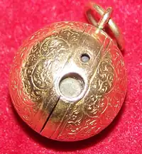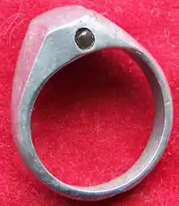 Stanhopes or Stanho-scopes are optical devices that enable the viewing of microphotographs without using a microscope.[1][2] They were invented by René Dagron in 1857.[1] Dagron bypassed the need for an expensive microscope to view the microscopic photographs by attaching the microphotograph at the end of a modified Stanhope lens.[1] He called the devices bijoux photo-microscopiques or microscopic photo-jewelry.[3]