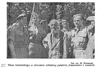 Grodyński's military service[6] in this period exploited his organizational skills, as well as his intelligence background and multi-lingual skills. On 2 June 1945, he took part in a ceremony in Rome celebrating the anniversary of Garibaldi's death, during which he represented Polish Armed Forces (pl), along with military leaders of French and other national armed forces.[18] The ending of the Second World War was devastating for Grodyński and other serving Poles who fought with the Allied Forces when much of Eastern Europe, including Poland, fell to Russian hegemony, thus robbing many of them of the prospect of returning to their homeland.[19]