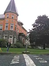 A seminary built here in 1829 became Stanstead College in 1873.[10] In 1884, Ursulines opened a convent here which operated a Francophone college.[11] The convent and the school both closed in 2004.[12] The word "college" here designates a high school in each case. Starting 2011, the convent became an elders residence named the "Stanstead Manor".