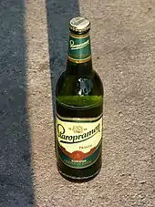 Due to competition from other Prague breweries, the brand name Staropramen, which translates as "old spring" (water source), was registered in 1911. After the First World War, all three breweries saw a period of sustained growth, and by the 1930s Staropramen was the largest brewery in Czechoslovakia.[3] Under communist rule after the Second World War, all Czechoslovakian breweries were nationalised, including Staropramen. After communism ended in 1989, the brewery, along with the Braník and Měšťan breweries, became in 1992 part of the Prague Breweries group (Pražské Pivovary), which by 1996 came under control of the Bass company.[4] Bass brought Ostravar into the group in 1997, then in 2000 sold its brewing operations to Interbrew, which merged with AmBev in 2004 to form Inbev. Staropramen has seen steady growth and is currently the Czech Republic's second largest beer producer with a 15.3% share of the domestic market.[5]