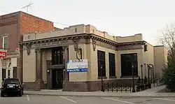 The State Bank of Spring Green is a historic bank building at 134 W. Jefferson Street in Spring Green, Wisconsin. The building was constructed in 1914–15 to house the bank of the same name, which was founded in 1900; at the time, it was the larger of Spring Green's two banks. Architects William F. Hilgen and Frank L. Ludwig of Cedarburg designed the Neoclassical building. The one-story brick building's design features a recessed entrance with a terra cotta door frame, a Classical column on each side of the entrance, a frieze with ornamental corbels, a dentillated cornice, and a parapet roof. The design uses brown terra cotta supplied by the Midland Terra Cotta Company; brown terra cotta was much more expensive than the white terra cotta typically seen in Neoclassical buildings of the era. The bank is the only Neoclassical building in Spring Green.[2]