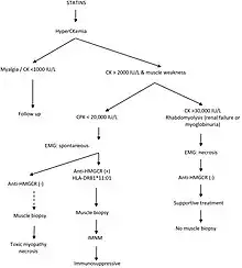 - ↑ Tiniakou, E; Pinal-Fernandez, I; Lloyd, TE (January 2017). "More severe disease and slower recovery in younger patients with anti-3-hydroxy-3-methylglu- taryl-coenzyme A reductase-associated autoimmune myopathy". Rheumatology. 56 (5): 787–794. doi:10.1093/rheumatology/kew470. PMC 5850825. PMID 28096458.