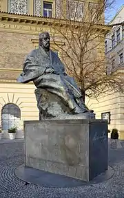 The statue of Bedřich Smetana (Czech: Socha Bedřicha Smetany) is a sculpture of the famous Czech composer Bedřich Smetana (1824–1884) located outside the Smetana Museum in Prague, Czech Republic. It was unveiled on 4 June 1984, in the centenary year of his death. The sculpture, 235 cm high and weighing about a ton, was by professor Josef Malejovský and architect Bedřich Hanák.[1]