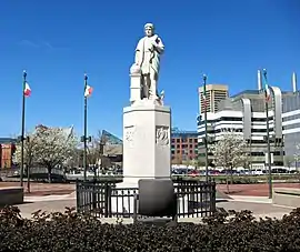 The Christopher Columbus Monument was a marble statue of the explorer Christopher Columbus in the Little Italy neighborhood of Downtown Baltimore, Maryland. The monument was brought down by protesters and dumped into the Inner Harbor on July 4, 2020, one of numerous monuments removed during the George Floyd protests.[1] The statue is being reproduced by the Knights of Columbus.