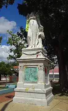 On 21 September 1991 the statue was decapitated;[2] its head was never found. On 26 July 2020 the statue was torn down by "anti-racism protesters". This was condemned by public officials; however, a police source told the press that they had received orders not to interfere with the protesters. Around the same time the protesters also destroyed a nearby statue of Pierre Belain d'Esnambuc, erected in 1935, and several months prior, in April, they destroyed two statues of Victor Schœlcher, claiming that the authorities should honour black emancipation leaders instead of the colonial heritage.[1]