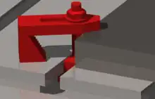 A step clamp is a type of serrated-edged clamp used in conjunction with step blocks in machining to fix an object in place during milling operations.