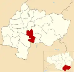 The ward is bordered by Hazel Grove, Bramhall North, Davenport & Cale Green, Manor and Offerton. Located within the ward is Stepping Hill Hospital, which is Stockport's only hospital and treats over 500,000 patients a year.[2] Together with Bramhall North, Bramhall South, Cheadle and Gatley, Cheadle Hulme North, Cheadle Hulme South, and Heald Green wards it makes up the Cheadle Parliamentary Constituency.