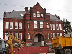 Designed by architect John A. Dempwolf and built between 1889 and 1890, this historic structure is a two-and-one-half-story, red-orange brick building that was created in the Romanesque Revival style. Built in the shape of a Latin cross, it has a slate covered hipped roof and features terra cotta ornamentation. It was named for Congressman Thaddeus Stevens (1792-1868).[2] The building was converted to apartments.