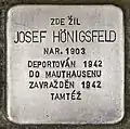 HERE LIVED JOSEF HÖNIGSFELD BORN 1903 DEPORTED 1943 TO MAUTHAUSEN MURDERED 1942 IBIDEM |