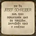 HERE LIVED JOSEF SCHREIBEROVÁ BORN 1888 DEPORTED 1943 TO THERESIENSTADT MURDERED 1943 IN AUSCHWITZ |