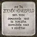 HERE LIVED ZDENĚK HÖNIGSFELD BORN 1934 DEPORTED 1943 TO THERESIENSTADT MURDERED 1943 IN AUSCHWITZ |
