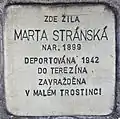 Marta Stránská née Strauss was born in Chřibská on 20 March 1899. She was the daughter of Gottlieb Strauss and Valentina née Weisskopf. She was a housewife and married to Richard Stránský. The couple had a daughter called Margita. Prior to Nazi destruction of Czechoslovakia she lived in Mladá Vožice. On 4 September 1942 she was deported from Prague to Theresienstadt concentration camp with transport Bd, together with her husband and her daughter. On 8 September 1942 the family was deported to Maly Trostenets extermination camp with transport Bk, train Da 226, and all three were killed there.