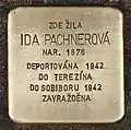 Ida Pachnerová née Morgenstern was born on 27 June 1876 in Prague. She married Pavel Pachner and the couple lived in Havlíčkův Brod. The couple had two daughters: Zdeňka (born on 13 March 1904) and Hana (born on 12 February 1908). In 1939, Pavel and Ida were expropriated and forced to move to Prague. On May 7, 1942, the couple were arrested and deported to Theresienstadt concentration camp by transport At, and finally transferred to the Sobibor extermination camp on May 9, 1942. There both were murdered by the Nazi regime.