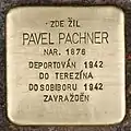 Pavel Pachner was born on 20 February 1876 in Havlíčkův Brod, then called Německý Brod [German Brod], where he also attended high school. He lived with his wife Ida in his home town. The couple had two daughters: Zdeňka (born 13 March 1904) and Hana (born 12 February 1908) and he became a successful and respected businessman. First he took over his father's drugstore U cerného psa [At the Black Dog]. He also ran a photography shop and a gas station. After the death of his brother Oskar in 1937, he inherited the house in the Dolni 104 as well as the wine and liquor store located there. In 1939, Pavel and Ida were expropriated by the Nazi regime and forced to move to Prague. On 7 May 1942, the couple was arrested and deported with transport At to Theresienstadt concentration camp. Pavel Pachner and his wife were finally transferred to Sobibor extermination camp on 9 May 1942 and murdered by the Nazi regime.[7]
