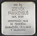 Zdeněk Frankenbuš, also Frankenbusch, was born on 8 January 1926. His parents were Rudolf Frankenbuš and Františka née Herrmann. His father ran a general store in Senožaty. On 13 June 1942, he and his family were deported from Kolín to Theresienstadt concentration camp by transport AAd (his number on the transport was 639). When the train arrived at the station of Bohušovice, he and his family were immediately taken to a waiting train and transported towards east with transport AAi (his number on this transport was 971). This train was later known as the Lost Train of Kolín as we still don't know where it was headed to. But it has been proven the none of the 1,000 Jews on this train could survive the Shoah. His father was brought to Majdanek concentration camp, had to do forced labour and died there on 17 September 1942. The inscription on the Stolperstein indicates, that also Zdeněk Frankenbuš was murdered that same day. This appears to be unsecured due to the sources.