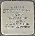 Zdeněk Schenkel was born on 13 November 1919 in ul. Fominově 257 in Chotěboř. His parents were Mayer Max Schenkel and Irma née Roubíčková. He went to primary school and then to high school in his home town. He could not complete his studies. On 5 December 1942, the family was deported with transport Cf from Pardubice to Theresienstadt concentration camp. His transport number was 188 of 650. On 5 September 1943, the family was deported with transport Dl to Auschwitz concentration camp. His transport number was 1960 of 2484. On 8 March 1944, father, mother and son were murdered by the Nazi regime at Auschwitz-Birkenau when 3,791 former Theresienstadt inmates, all located at the so-called Familienlager BIIb [family camp] in Birkenau, were gassed within one night.[2][4]