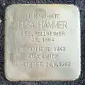 HERE LIVED ELSA HAMMER NÉE FELLHEIMER BORN 1884 DEPORTED 1943 AUSCHWITZ MURDERED 24.9.1943 |