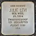 HERE LIVED JULIE LEVI NÉE WEIL BORN 1894 FORCED SALE OF BUSINESS ESCAPE 1939 USA |