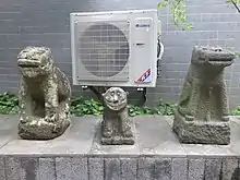 The Leizhou stone dogs are historical canine sculptures from the Leizhou Peninsula. They blend the locally-held tradition of totem worship with different ethnic cultures.[1] In the past, the Leizhou Peninsula was an inhospitable land with relatively few inhabitants. Due the difficulty of bearing and raising children while living in such harsh conditions, the original inhabitants worshipped dogs, which could easily give birth to their offspring.[1] Numerous stone dogs are widely distributed at village entrances, roads, and gates. The Stone Dogs are an important part of the local cultural history, and have many meanings and shapes. They are roughly carved, and have turned grayish from long term exposure to the elements. They are considered a highlight of the peninsula's culture.