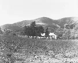 In 1858, Henry Septimus Clark purchased land near the quarry from Edlin[6] in order to establish a vineyard. His fiancée, Annie Montgomery Martin, dubbed the land "Stonyfell"[7][8][9] (a "fell" being a term used for barren or uncultivated high ground in Northern England). Clark started planting the original vineyard with assistance from Robert Slape.[7][9] He built the two-storey wine cellars in the side of the hill, from locally quarried stone. By 1862, 25 acres (10 ha) had been planted with vines, mostly of the Black Portugal variety.[7] Joseph Crompton assisted in the vineyard, and in 1862 established a partnership with Clark and his brother A. Sidney Clark to conduct the business of winemakers, trading as Clark and Crompton. The company offices were in the same building as Francis Clark and Sons, with a warehouse in Blyth Street, Adelaide. On Henry's death, Sidney inherited his share of the business, which he sold to Crompton in 1873, though the business name remained "Clark and Crompton" until 1880.[10][11] Crompton took over the Home Park Winery at Magill, at which time Henry Tyler was the winemaker.[12]