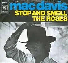 Released as a single from his album of the same name (not to be confused with the album released in 1981 by Ringo Starr), the song "Stop and Smell the Roses" became Davis' second Top 10 hit on the U.S. pop chart, where it peaked at No. 9 in the fall of 1974. The song remained in the Top 40 for ten weeks.[1] On the U.S. adult contemporary chart, "Stop and Smell the Roses" became the singer's second No. 1 hit, following "Baby, Don't Get Hooked on Me".[2] On the U.S. country music chart, where Davis has enjoyed considerable success, the song reached No. 40.[2] Also that year, Henson Cargill took a rendition to No. 29 on the same chart.