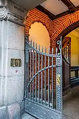The decorative elements of the facade ("sandstone bands", pilasters and figureheads) are of reinforced concrete elements. It is one of the earliest examples of