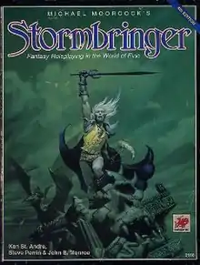 Stormbringer is a fantasy tabletop role-playing game published under license by Chaosium. Based on the Elric of Melniboné books by Michael Moorcock, the game takes its name from Elric's sword, Stormbringer (though one edition was published as Elric!). The rules are based on Chaosium's percentile-dice-based Basic Role-Playing system.[1]
