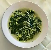 According to Ada Boni, stracciatella alla romana used also to be scented with marjoram.[2] Other traditional Italian and Italian-American recipes suggest garnishing with chopped parsley.[4][5] Some American variations of the soup incorporate spinach as a main ingredient.[6][7]