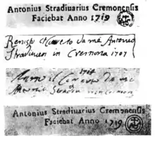 - ↑ Hill, W.H.; Hill, A.F.; Hill, A.E. (1963). Antonio Stradivari: His Life and Work. New York: Dover Publications. p. 162. ISBN 978-0-486-20425-3. Retrieved 3 July 2008.