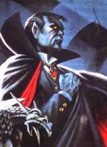 ![]() Strahd von Zarovich as portrayed in the comic Shadows of the Vampire illustrated by Nelson Daniel and Max Dunbar. | |