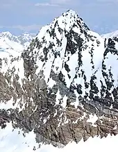 The Strahlkogel seen from the Breiter Grieskogel. The great bands of quartz on the south face are clearly visible.