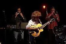 In 2020, during the spring coronavirus lockdown, pianist Emmet Cohen, bassist Russell Hall, and drummer Kyle Poole started a YouTube channel for "Emmet's Place," a house concert venue run out of an apartment in Harlem. The channel gained millions of viewers, and he invited a wide range of guests to his apartment to sustain the channel and to showcase straight-ahead jazz.[70] The Guardian described the style of music he performed as an "inclusive brand of jazz, incorporating the entire tradition of the genre from the 1920s to the present day" and noted the explosive growth of his almost entirely internet-based following.[71] Meanwhile other artists, such as Pasquale Grasso, maintained more specific brands of straight-ahead jazz, with the guitarist recording a "digital showcase series" with albums including Solo Standards and Be-Bop! featuring vocalist Samara Joy, bassist Ari Roland, and drummer Keith Balla.[72]