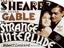 Strange Interlude is a 1932 American pre-Code drama film directed by Robert Z. Leonard and released by Metro-Goldwyn-Mayer. The film stars Norma Shearer and Clark Gable, and is based on the 1928 play Strange Interlude by Eugene O'Neill. It is greatly shortened from the play: the stage production lasts six hours and is sometimes performed over two evenings, while the film runs for two hours.