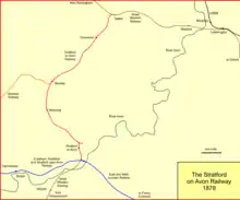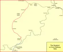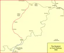 The Stratford on Avon Railway[note 1] was a branch railway line opened in 1860, to connect the town of Stratford-upon-Avon to the Great Western Railway main line at Hatton, in England. It was worked by the GWR. In 1861 it was connected through Stratford to a branch line from Honeybourne, and this later enabled the development of a through mineral traffic. The company was absorbed by the GWR in 1883.